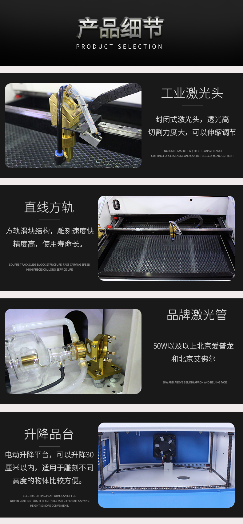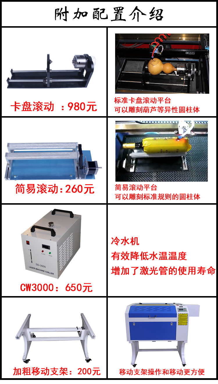 主要用于小型工藝禮品的雕刻、切割。如:雕刻人像、胸牌、胸卡、各種工藝禮品外包裝雕刻加工。