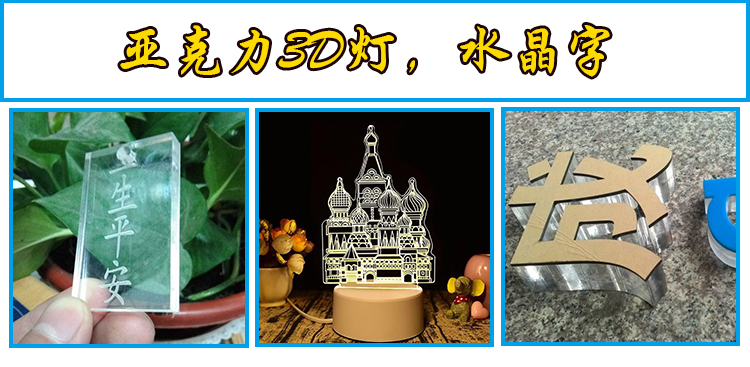 2、于小面積的工藝品加工:雙色板、木板、竹片、有機玻璃板、布匹上刻制各樣的圖形和文字。